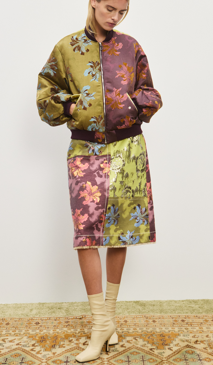 Crafted from soft cotton woven to have some structure this little jacket is the perfect fun seasonal layering piece. Easy shape that hits at the hip, pointed collar an open cut with no closures. Hand made and hand embroidered with intricate beading and embroidery featuring western motifs. Wear this now over a dress or tank and all Fall over a cozy cashmere sweater with denim.