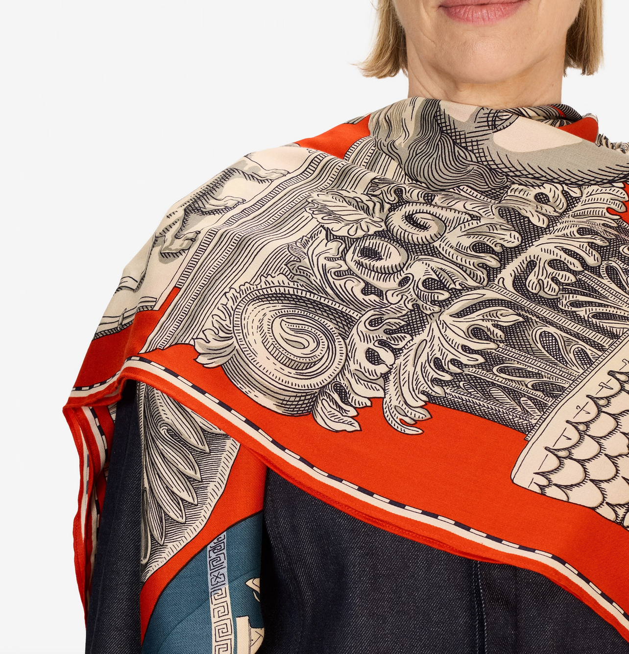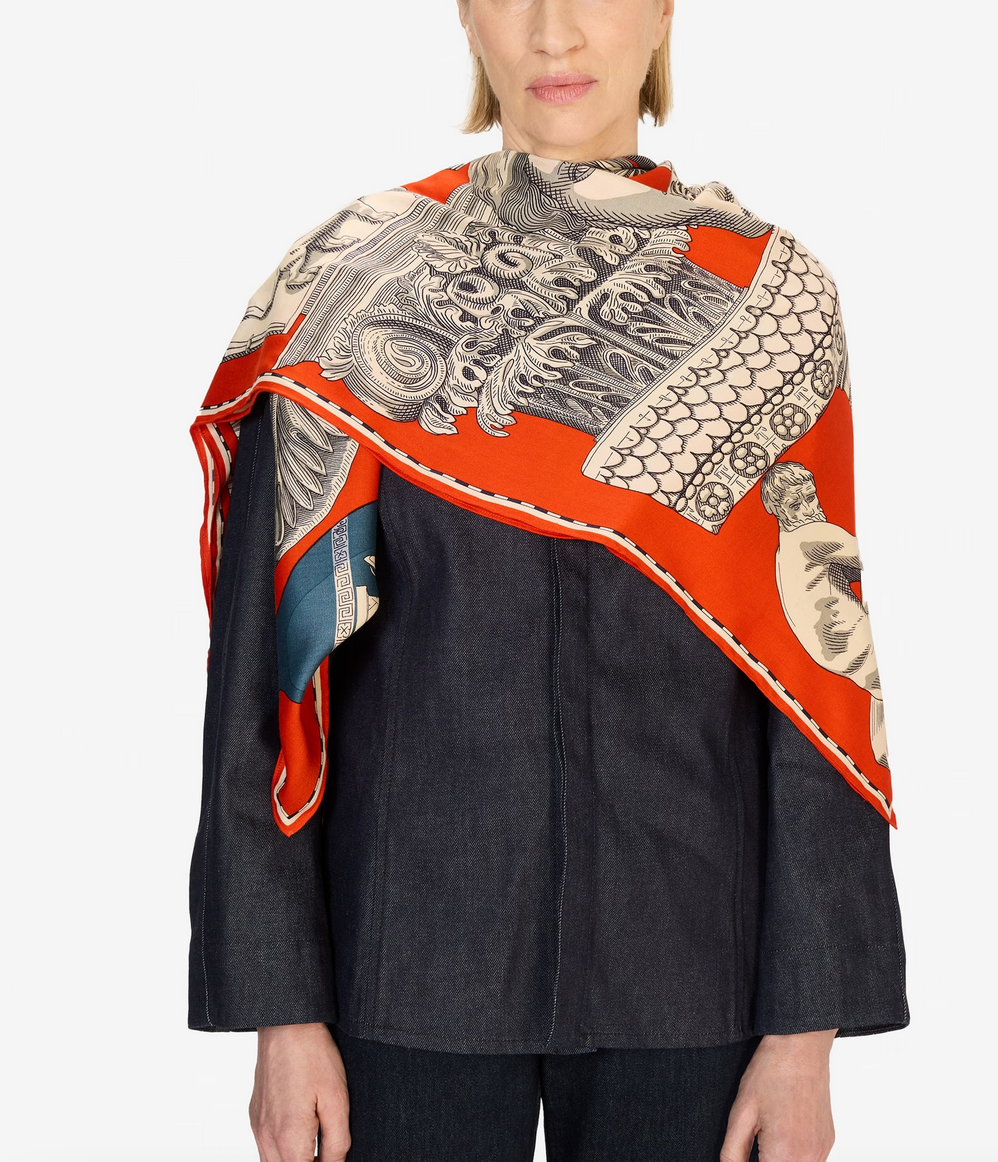 Over-sized square scarf crafted from silk and modal.
