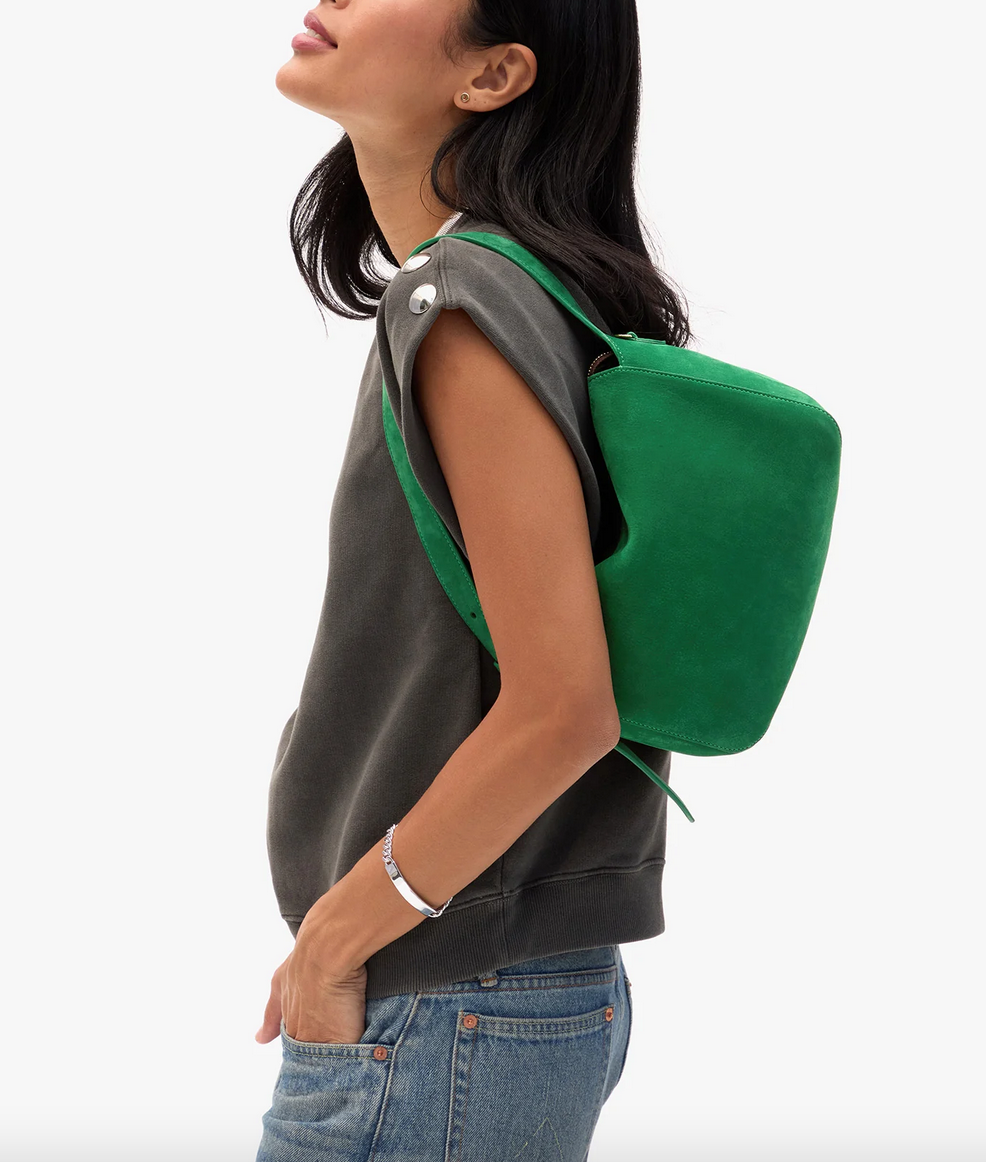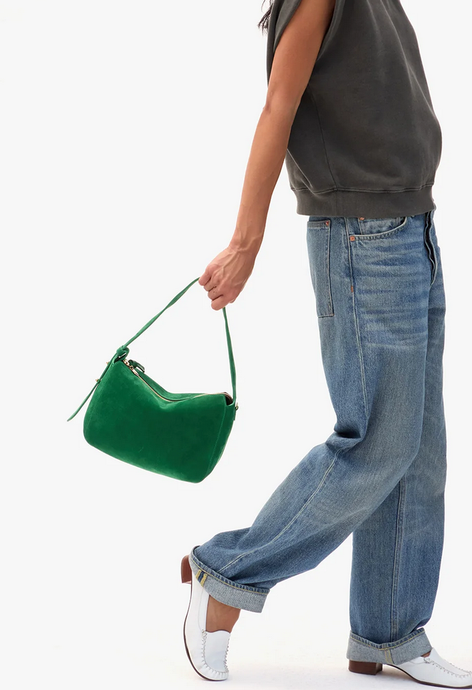 Shoulder bag made from Italian suede with a gorgeous velvety finish. Adjustable shoulder strap.